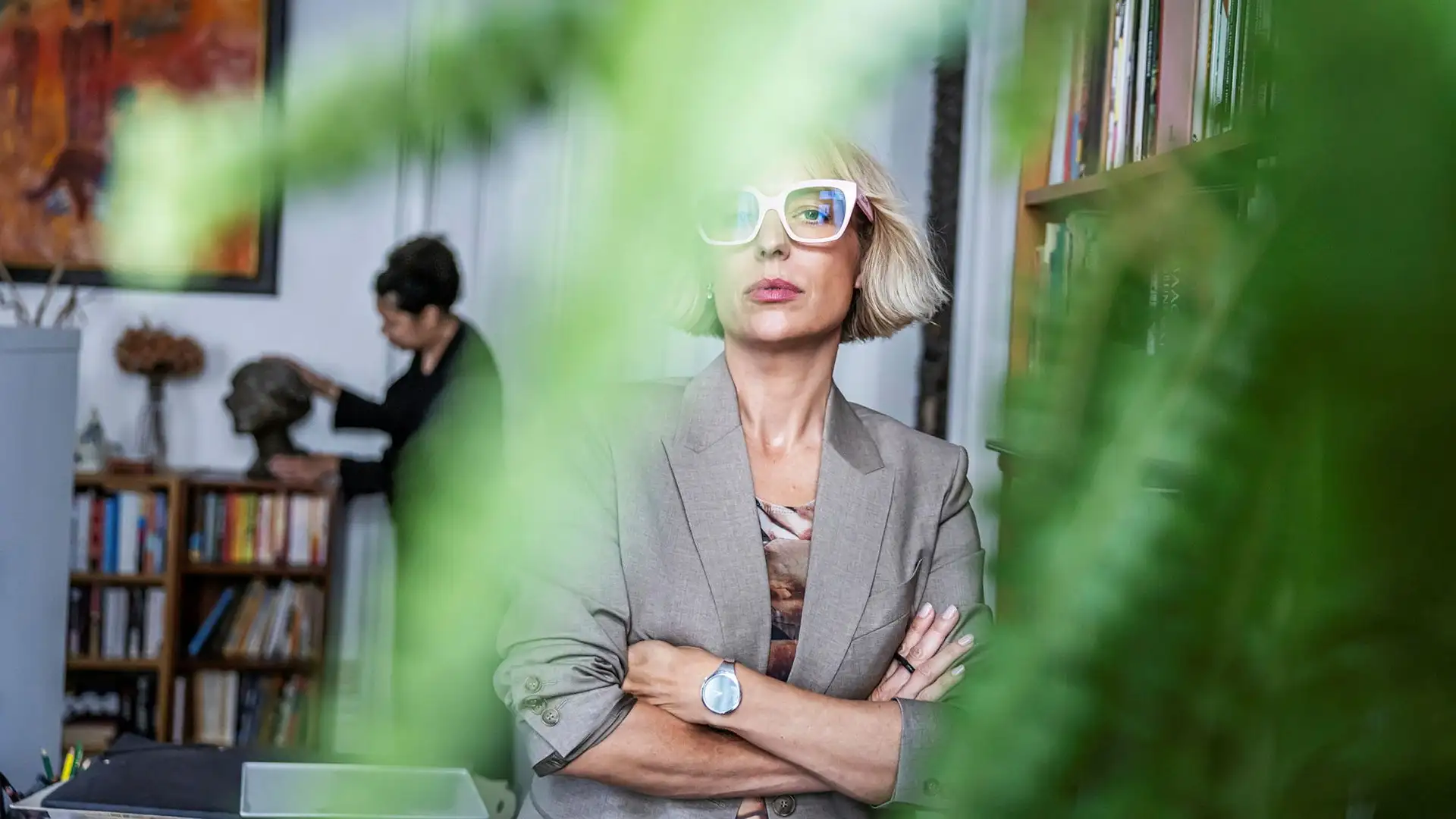 Huset ligger på en sluttande gata en bit norr om stadskärnan. Fasaden är av bucklig sten men entrén är marmorinklädd. I den nedsänkta lobbyn finns mjuka soffor och enorma porslinsvaser. Uppe i lägenheten vittnar spridda lådor om nylig inflytt, men Paola Bjäringer har redan hunnit installera ett antal konstverk från sina Misschiefs-konstnärer.